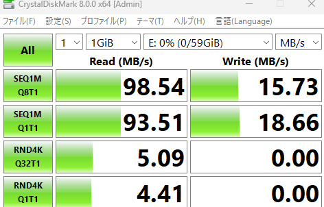 ご覧のようにreadはUSB3相当なのですが,writeが全く駄目でした.