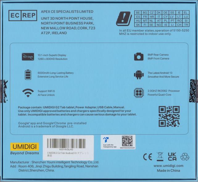 パッケージは、鮮やかな水色のパッケージで、表面には、メーカー名と機種名及び機種のシリーズでも表現しているのでしょうが、”G"をデザインしたものが中心に描かれていました。