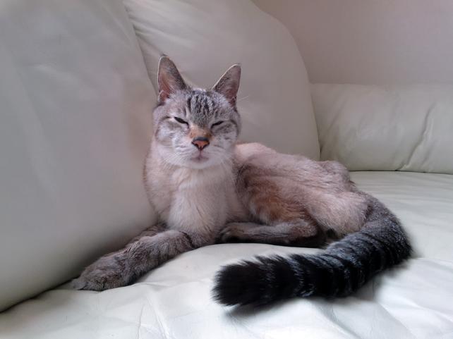 裏面のカメラで家猫を撮影してみましたが、解像度はそこそこ、カラーバランスは変な色かぶりが無く、良好なカラーバランスでした。