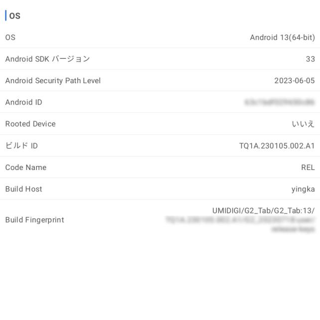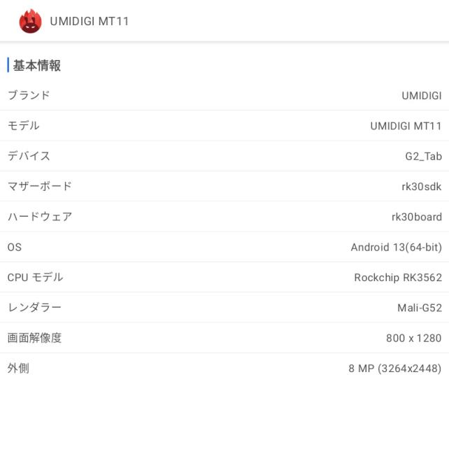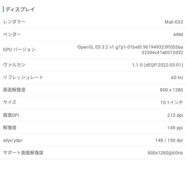 Android 13という最新バージョンのOSが搭載されていて、画面の解像度は、1280 x 800です。