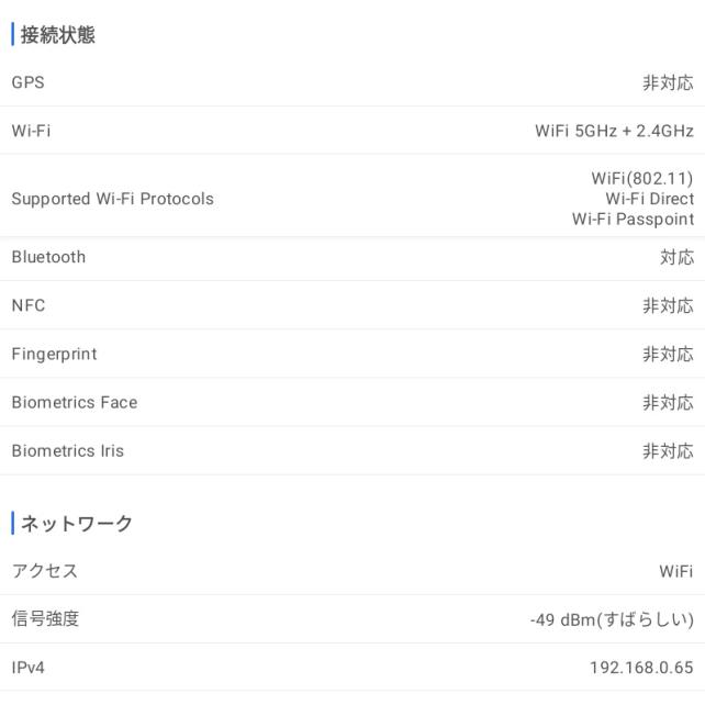 無線通信は、Wi-FiとBluetoothのみですが、W-Fi Directにも対応しています。