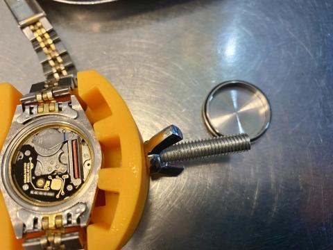 ホンモノじゃないので、ネジザウルスを使って裏蓋を回します、なんとかなりました。