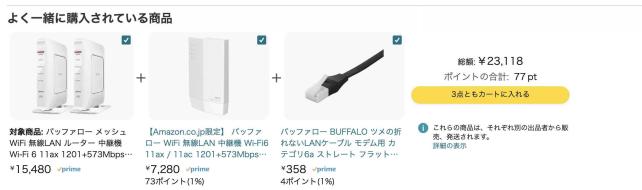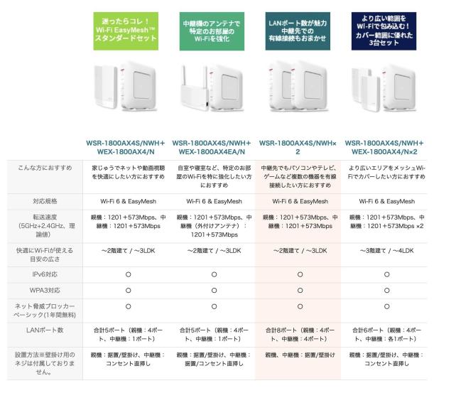 バッファローの メッシュWi-Fi無線LANルーター 中継機 2台セットのページ。