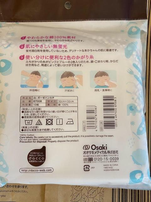 赤ちゃん向けのガーゼハンカチ 10枚入り Amazonで買い求めました。