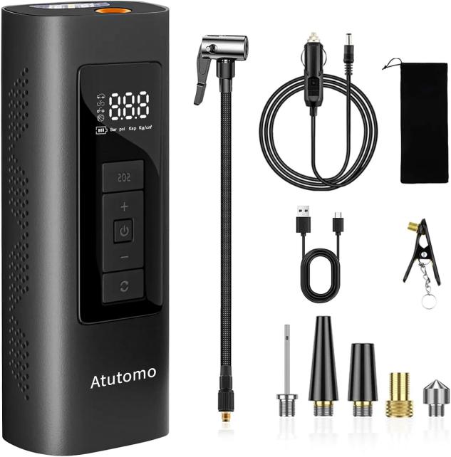 この電動空気入れは、170mm(高) x 69mm(幅) x 50mm(奥)で、619gと比較的小型ですが、ずっしりと重いです。