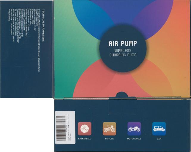 本体のパッケージは、天面はカラフルなデザインで、AIR PUMP/WIRELESS CHARGING PUMPという文字が記載されているだけです。