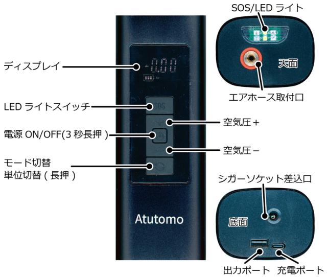 モード切替ボタンの長押しで、PSI , kPa , BAR , Kg/cm2の4種に切り替えて表示が可能で、指定した空気圧に達すると、自動で空気の注入が止まります。
