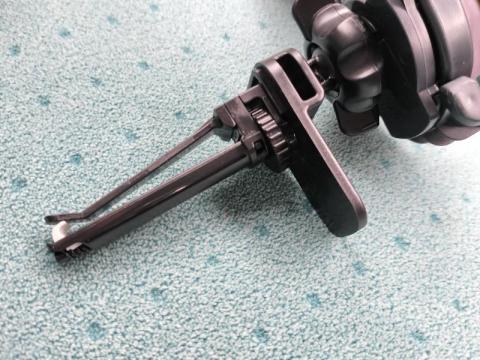 スマホを固定するところは手回しのダイヤルになってますが、これも力が入りやすいように飛び出てる部分があるのがとてもかしこい。ダイヤルは花びら状になってるんですが、少し長いのがわかるでしょうか?6本のうち、対角の2本だけ長い感じで、しっかり力が入ります。