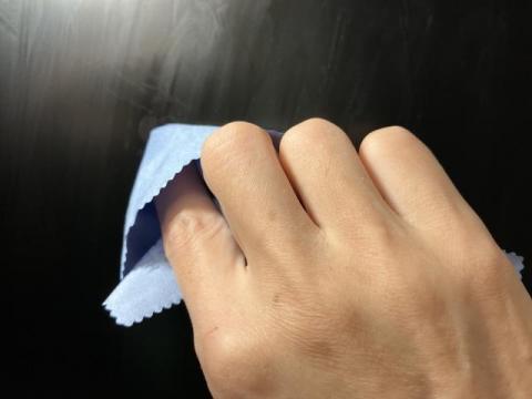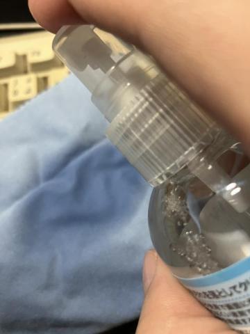 まずはクロスにクリーナー液を2,3回プッシュして湿らせて、