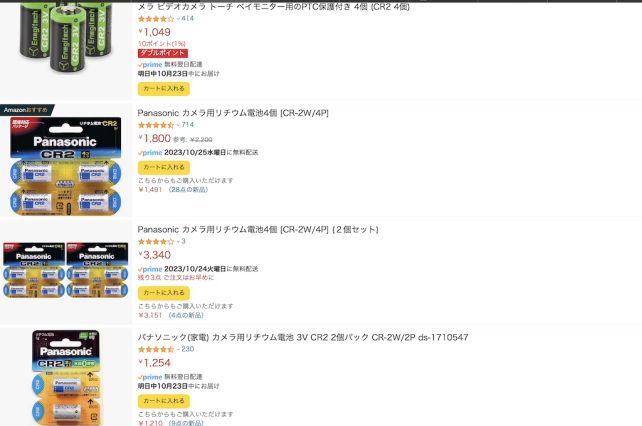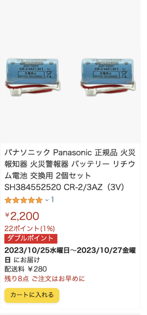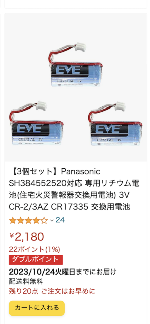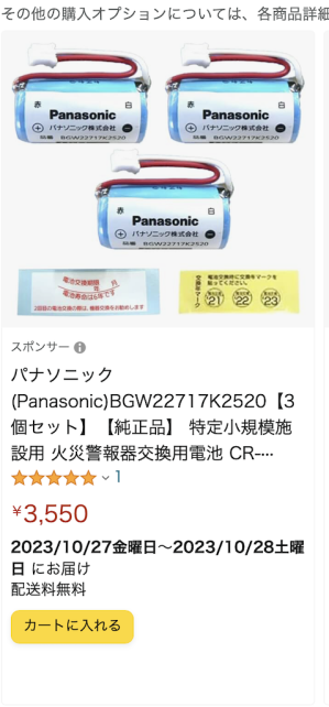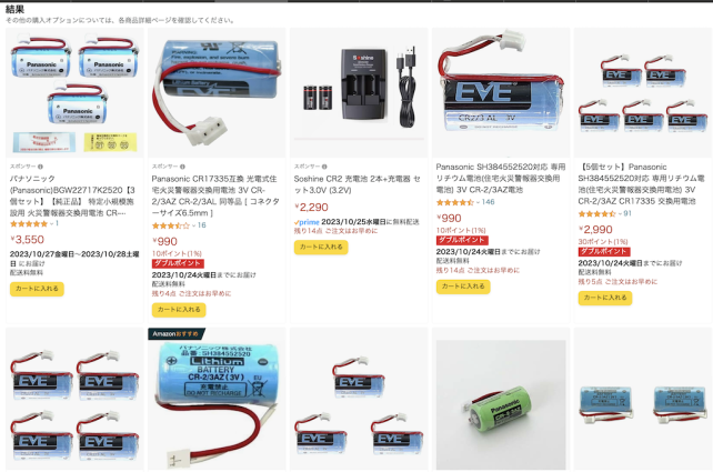 検索窓にはCR-2に加えて3AZを足すことで 火災報知器用の電池が出てきます。
