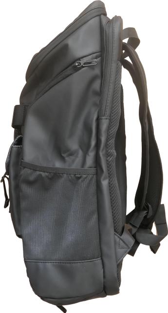 左右各々のサイド面には、メッシュ状のアウターポケットもあるので、ペットボトルや折り畳み傘等を収納できます。