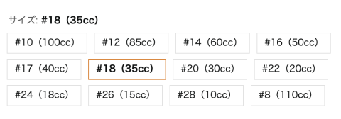 Amazonの販売ページには「18」番相当の容量のそれとして記載されています。
