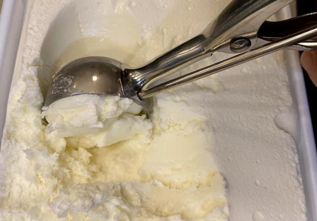 冷凍庫の温度設定にもよりますが、冬場のアイスクリームは硬いよ。