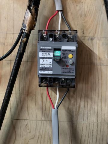 あと2馬力仕様なのでコンプレッサー毎に7.5Aの漏電ブレーカーが必要です。