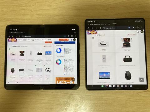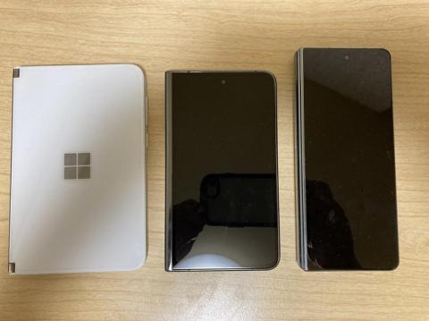 中央が本製品で左がSurfaceDuo、右がGalaxyZFold4で、本製品が横幅があることがわかります。