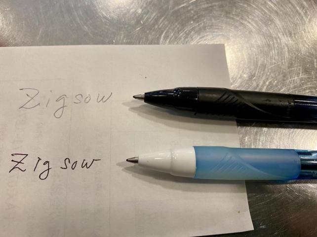 上のZIGSOWは、インクが目視できないレベルまで減った時の筆記