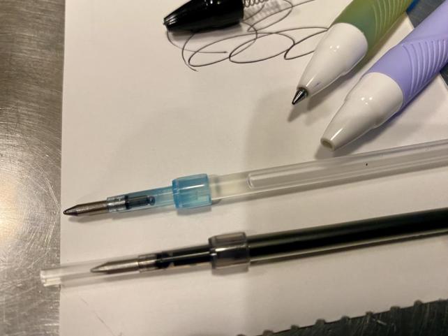 上の青いペン先の軸は、完全に使い切ったジェットストリーム。