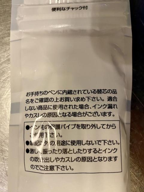 ビニール包装には、使いやすい圧着チャックが備わります。 親切だわ。
