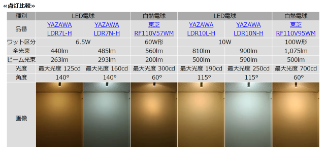 ※ヤザワさん的には900ルーメンで100W相当としてあるけど、900ルーメンなら60W相当かも?