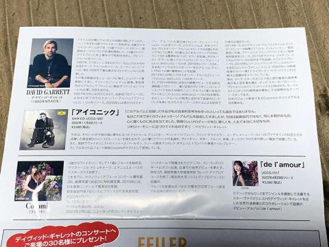 入場時にデイヴィッド・ギャレット、Cocomiのリーフレットが入った袋が渡されます。