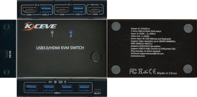 背面には、PC1/PC2用に、HDMI入力とUSB 3.0ポートが各々1基、テレビ用にHDMI出力が1基付いています。