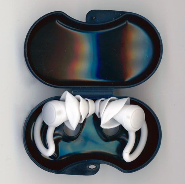 中には、黒いプラスティック製ケースが入っていて、ケースを開けると、白いシリコンゴム製の耳栓が入っていました。