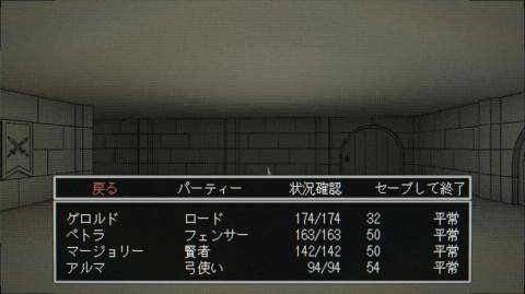 「状況確認」は、迷宮の階層と向いている方向、現在座標が表示されます。