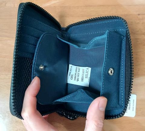 外周はファスナー式になってるので、札入れの中身も含めて落とすことが無いのが良いです。