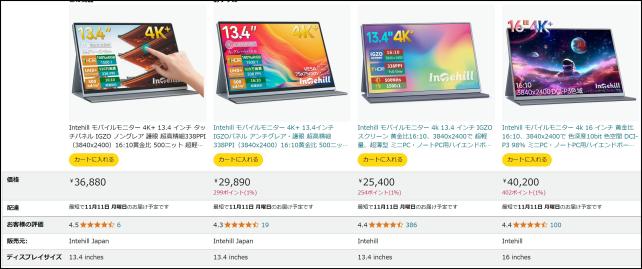 モバイルモニター情報を見ていて、16:9じゃなくて、16:10の4K+モニターがとても良さそうということを知りました。