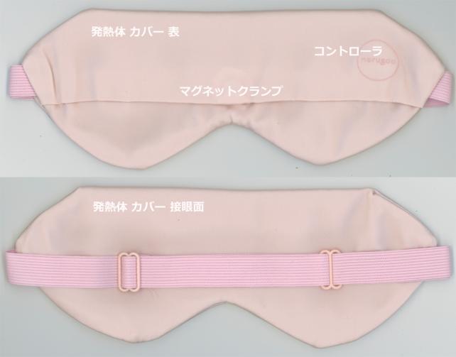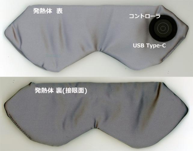 このホットアイマスクは、コントローラーの付いたヒートパッドを、カバーに収納して、アイマスクのように装着するものです。