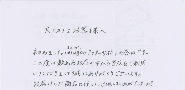 扱説明書、サポートからのメッセージ、使用上の注意、洗濯に関する注意書きが入っていました。