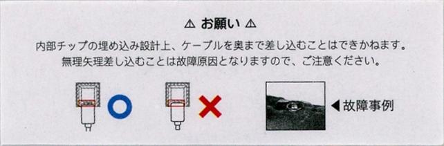 一般的なUSB Type-Cのコネクターですが、充電用USBケーブルの袋に、無理やり深く差し込むと故障するので注意するようにシールが貼ってありました。