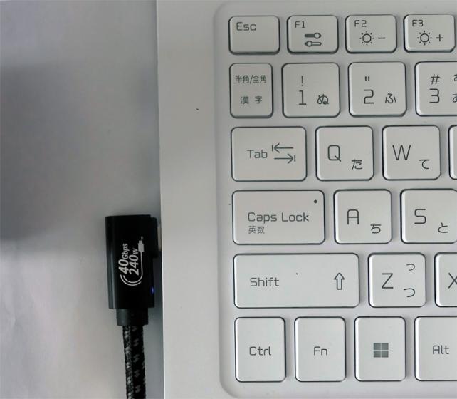 次に、USB PD対応のノートPCに、USB PD対応100WUSB充電器をこのケーブルで繋いで、充電してみました。