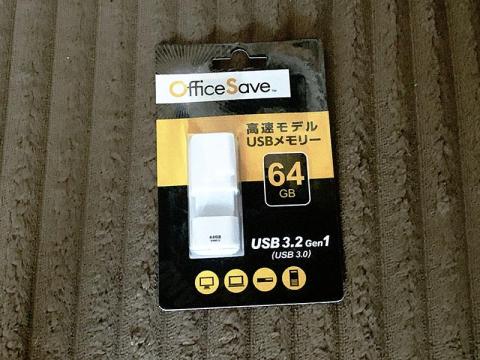 以前同じOffice SaveブランドのUSBメモリーを同じような特価品で買いましたが、このときにはUSB 2.0対応のものでした。当然速度的な限界があるのでレビューでは取り上げていません。しかし今回の特価品はUSB 3.2 Gen1×1、まあ平たくいってしまえばUSB 3.0対応のものです。これなら速度を検証する価値がありそうということで、これもついでに購入してきました。
