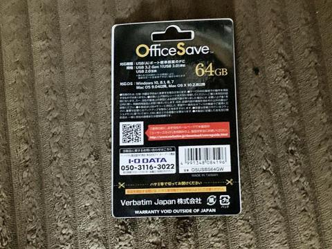 取り敢えずSSDの購入札を確保して、他の特価品を見ていて目にとまったのは、このOffice Saveブランド、バーベイタム製のUSBメモリーでした。