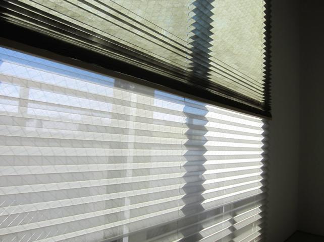 プリーツスクリーンとは、ヒダがあって蛇腹の形に折れ曲がるようになっているもので、丁度ロールスクリーンとカーテンの間のような特徴を持っています。