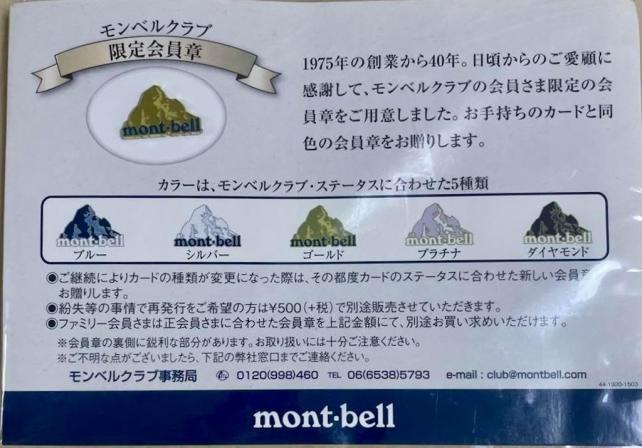 信頼のブランド モンベルの会員バッジのご紹介でした。