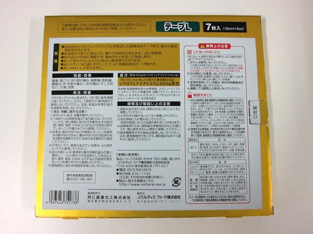「ボルタレン」っていう薬かと思ってたら、ボルタレンは商品名でパッケージにもある通りに「ジクロフェナク」が本来の正式な薬品名みたいですね。