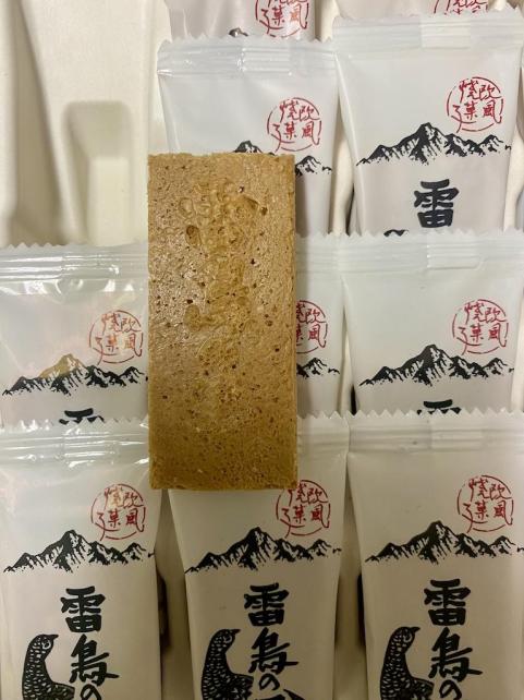 ウエハース部にも よく見ると 雷鳥の里 と刻印されてます。