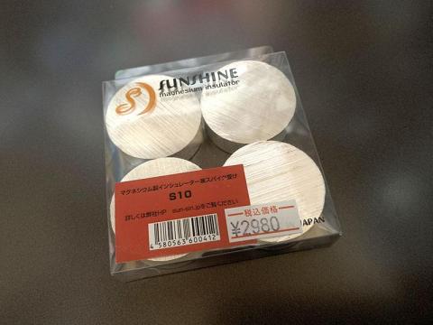 取り敢えず以前フォノイコライザー用に買った制振ボードSE25の大型版であるSE40は押さえて、後何を買うかと考えた時に目に付いたのが、マグネシウム製の小型インシュレーター兼スパイク受けのS10でした。価格も手頃なので気軽に使って試せるのが良いところです。