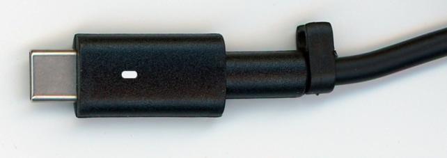 このACアダプターのUSB Type-Cケーブル端子のハウジングには、ホワイトLEDのパワーインジケーターが付いているので、電源供給が視認できます。