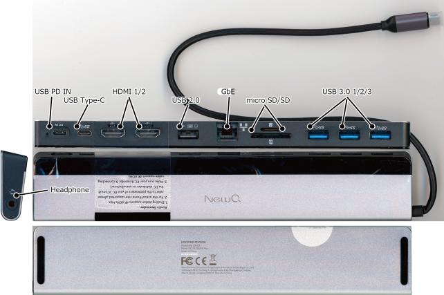 このドッキングステーションは、USB 3.0 Gen1(5Gbps)Type-A x3,USB 2.0(480Mbps) Type-A x1,USB 3.0 Gen1(5Gbps) Type-C x1,SD Slot x1,micro SD Slot x1,HDMI x2,ギガビット イーサコネクタ x1,USB PD IN(100W) x1,ヘッドフォン x1と多彩なインターフェイスを備えています。