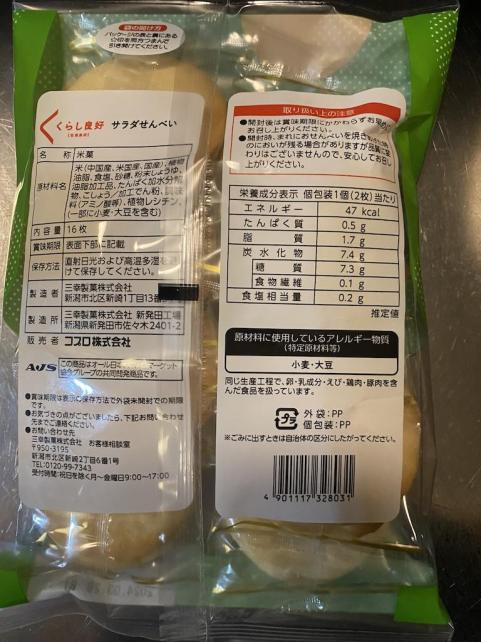 それが AJSのPBの サラダせんべい 塩味 だと思います