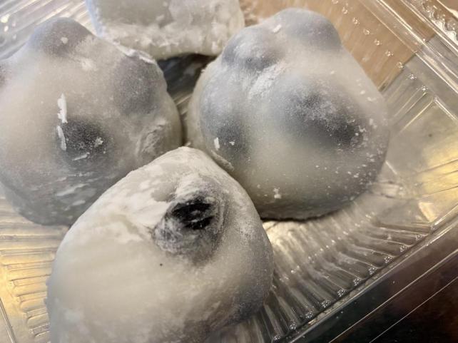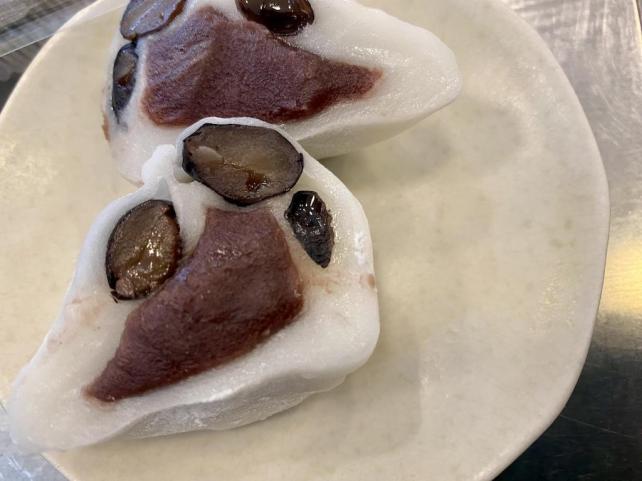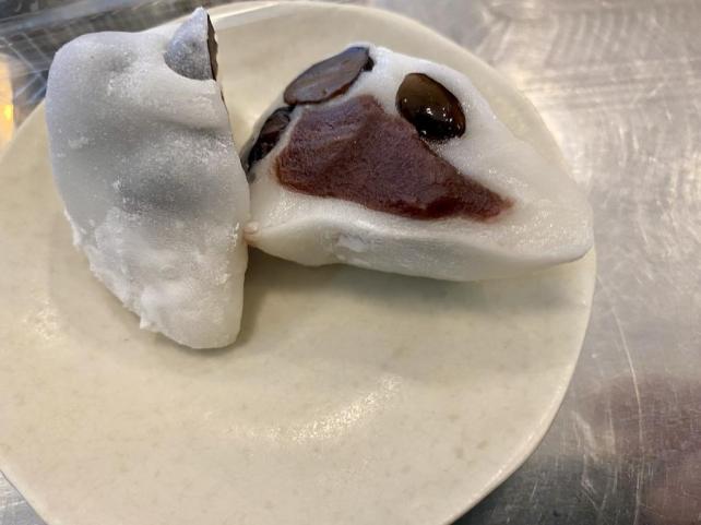 こちらが 丸に抱き柏 の黒豆大福の断面
