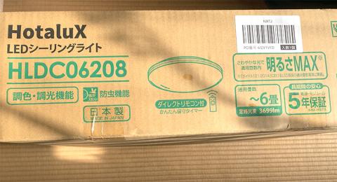部屋が6畳でそれほどの光量は必要ないのですが、目の負担を考慮してある程度の段階で調光できること、色温度を落とせる調色があることを条件に探して、結果として購入したのがHotalux HLDC06208という製品でした。