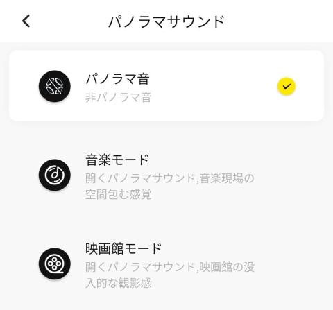 音楽モードと映画館モードの2種類のパノラマモードがある。
