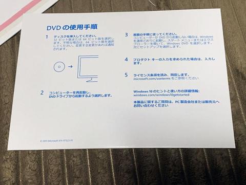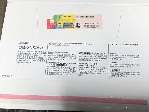 それでは買ってきたWindows 10 Pro 64bit DSPを確認してみましょう。