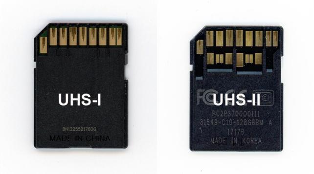 一般的なSDカードは、USH-Iの仕様で、比較すると、SDカード裏面の接点の数が異なります。