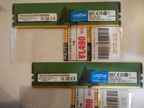 一年以上先になるかもしれませんがWindows11に対応していない2号機と4号機のリプレイスを考えているのですが値上がり傾向に移りつつあるメモリだけでも確保しようと思い2号機用のは取り敢えずDDR4 3200 16GB2枚組のものを買ったのですが、たまたま出掛けた地元のPCショップで手頃なお値段だったので購入しました。