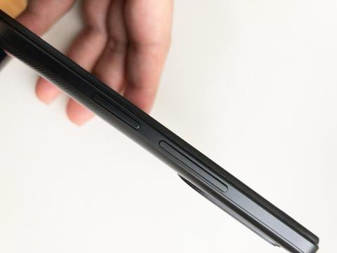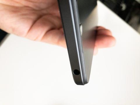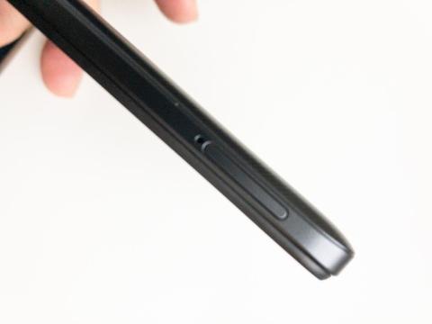 左側は、SIMカードとmicroSDカードのスロットトレイの挿入口があります。このモデルは4Gですが、デュアルSIMを搭載できるのです。